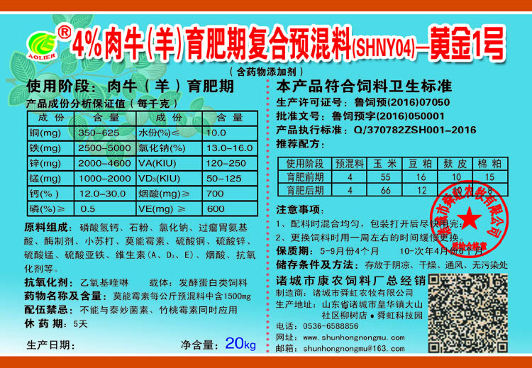 康農(nóng) 4%肉牛(羊)育肥期復合預混料-黃金1號